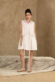 Part shirt, part jacket — the Bayaan is designed to do both. Sleeveless, white in colour, and handblock printed in pink eco-friendly dye, it comes with a long, detachable belt that lets you wear it fitted or easy. Style it open over a dress or tank, or button it up as a standalone top. It’s structured, sharp, and speaks for itself.
