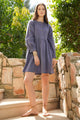 Introducing our stylish greyish blue midi dress, designed to elevate your wardrobe with its exquisite details.